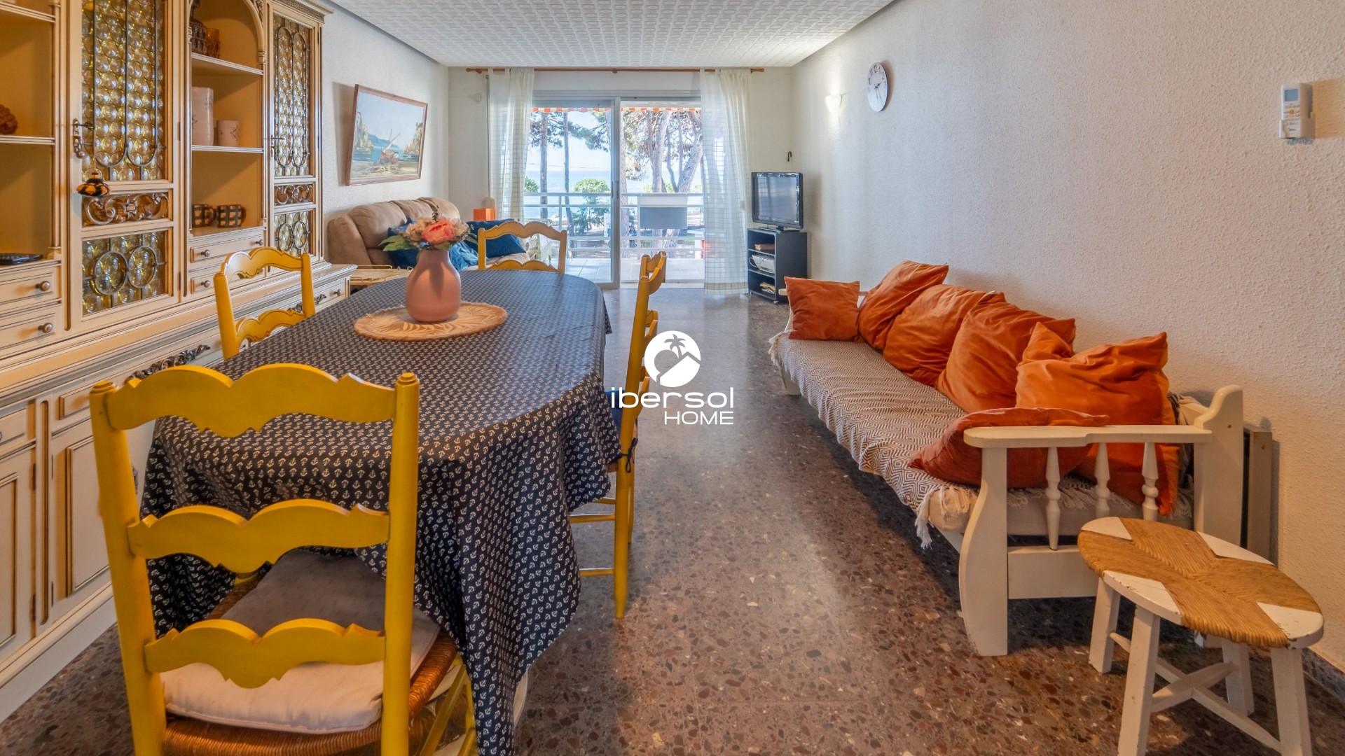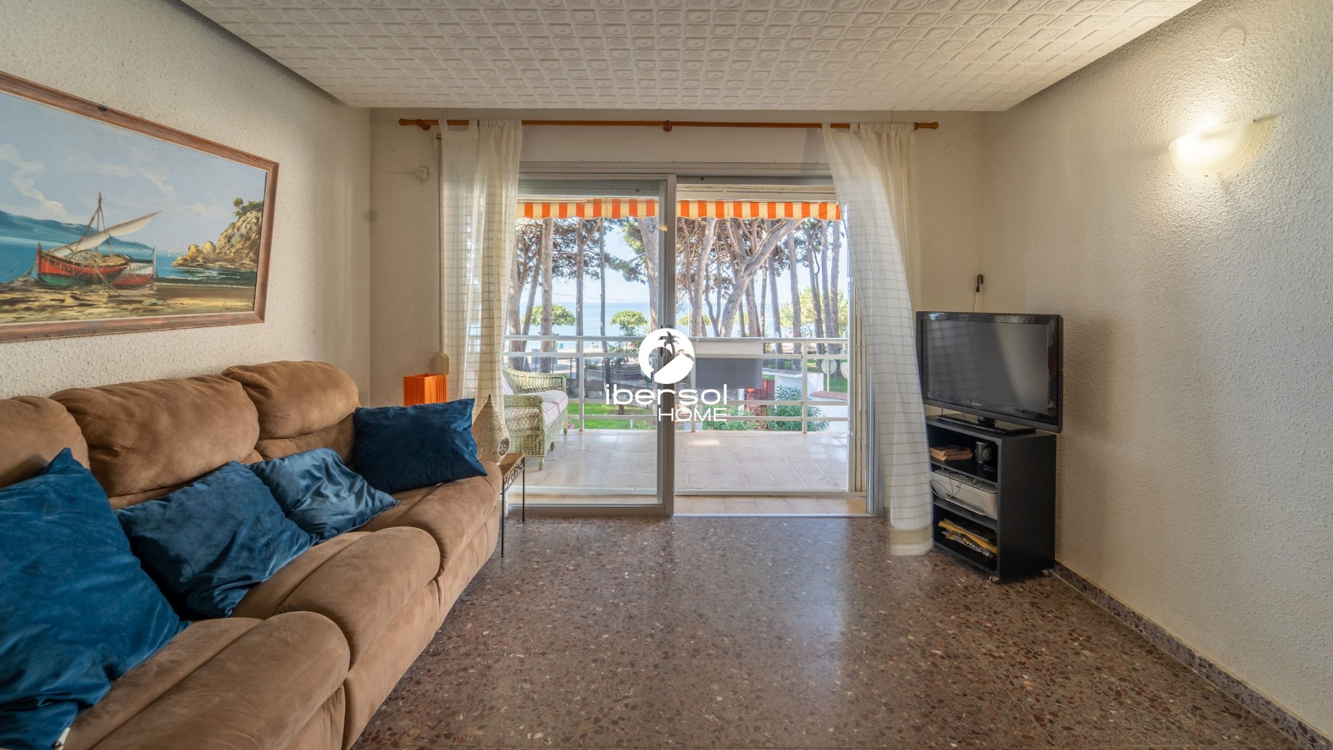Descubre tu apartamento en primera línea con vistas al mar y acceso directo a la playa. Amplio apartamento de 112m2 ubicado en la zona de Cambrils Mediterrani con salida directa a la playa. Cuenta con recibidor, 3 habitaciones dobles, dos de ellas con vistas al mar, 2 baños completos, cocina independiente, amplio salón comedor con salida a la terraza con vistas panorámicas al mar ideal para disfrutar el sol y clima mediterránea. Dos aparatos del aire acondicionado, armarios empotrados, jardín comunitario con duchas. Edificio del 1970, sin ascensor. El apartamento necesita reforma pero ofrece muchas posibilidades para hacer la renovación a su gusto.