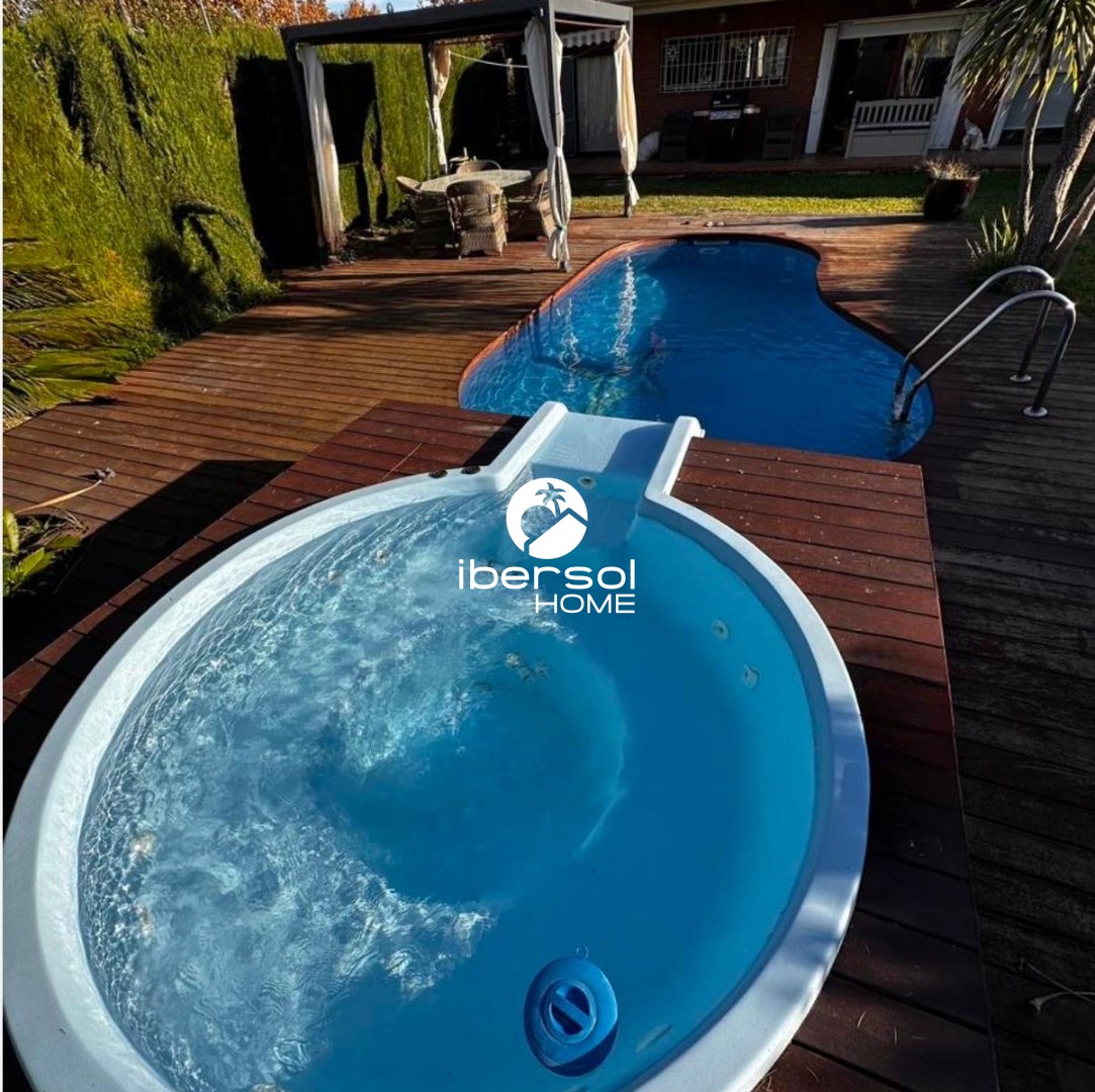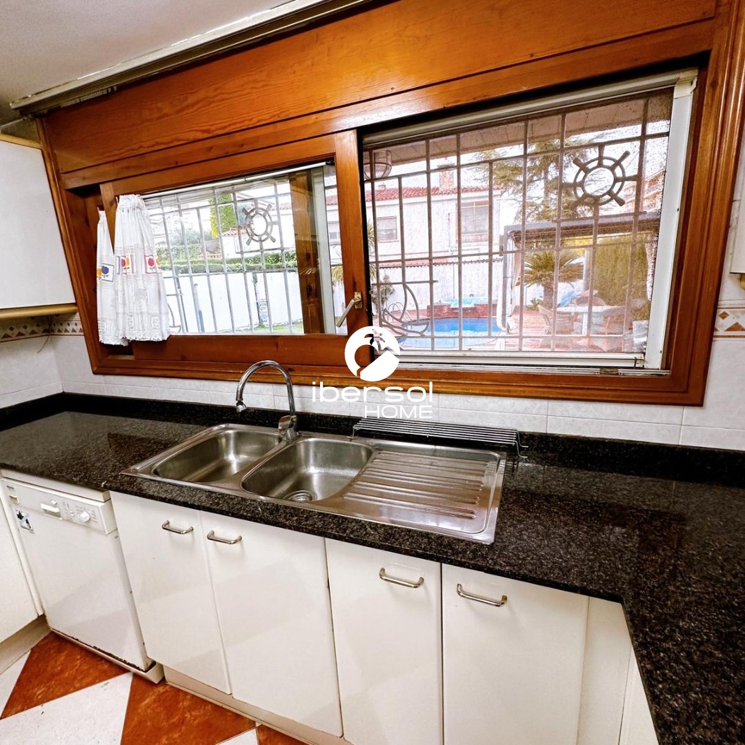 Villa individuelle à vendre dans le meilleur quartier de Calafell, à proximité de tous les services, écoles, supermarchés et à seulement 5 minutes de la plage. La maison de 211 m2 construite selon le cadastre sur un terrain de 452 m2. Il a 3 étages, le rez-de-chaussée se compose d'un hall, un grand séjour avec accès au jardin privé avec piscine et jacuzzi, une chambre, un WC, une cuisine séparée avec accès à la terrasse vitrée qui sert de salle à manger. , un garage pour 2 voitures. Le premier étage se compose de 3 chambres doubles et de deux salles de bain complètes. Au sous-sol il y a un grand salon et une salle de bain avec douche. Chauffage au fioul, climatisation, placards, vendu semi-meublé.